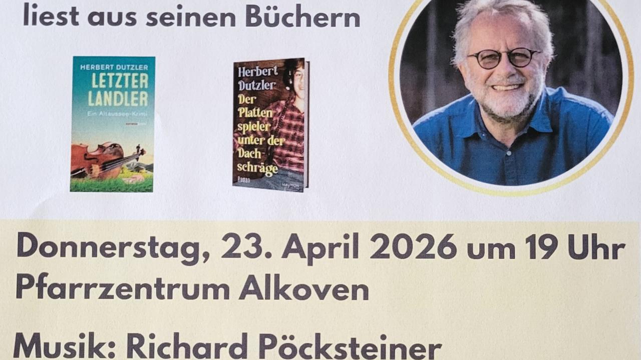 23.04.2026 19.00 - Lesung Herbert Dutzler Herbert Dutzler liest aus seinen Büchern "Letzter Landler" und "Der Plattenspieler unter der Dachschräge". Für die musikalische Umrahmung sorgt Richard Pöcksteiner und für das leibliche Wohl das Team der Bibliothek!